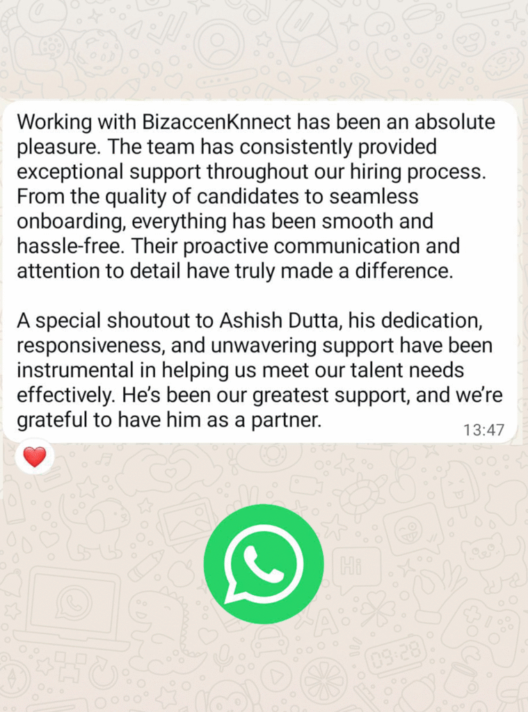 At BizaccenKnnect, we go beyond being just an HR consultancy. We are career builders and growth partners. For candidates, we open doors to meaningful opportunities where passion meets purpose. For clients, we provide access to talent that matches skills, culture, and long-term goals. Our belief is simple: success is built on strong connections. That’s why we focus on simplifying hiring, accelerating growth, and creating lasting impact for individuals and businesses alike.